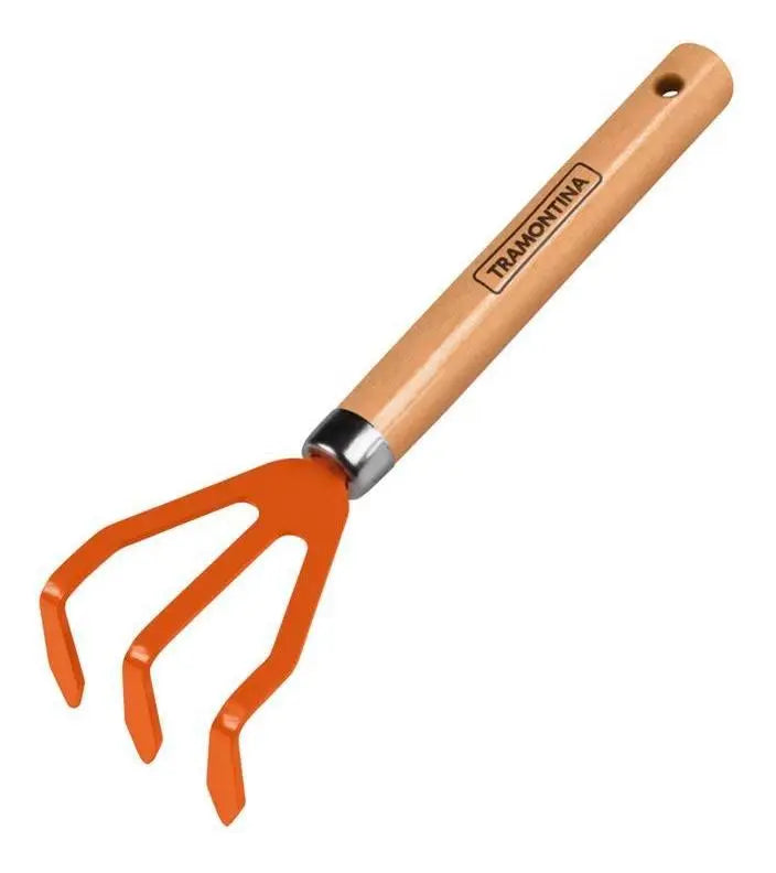 Ancinho pequeno para afofar terra, remover resíduos e preparar vasos e canteiros com mais controle e precisão.