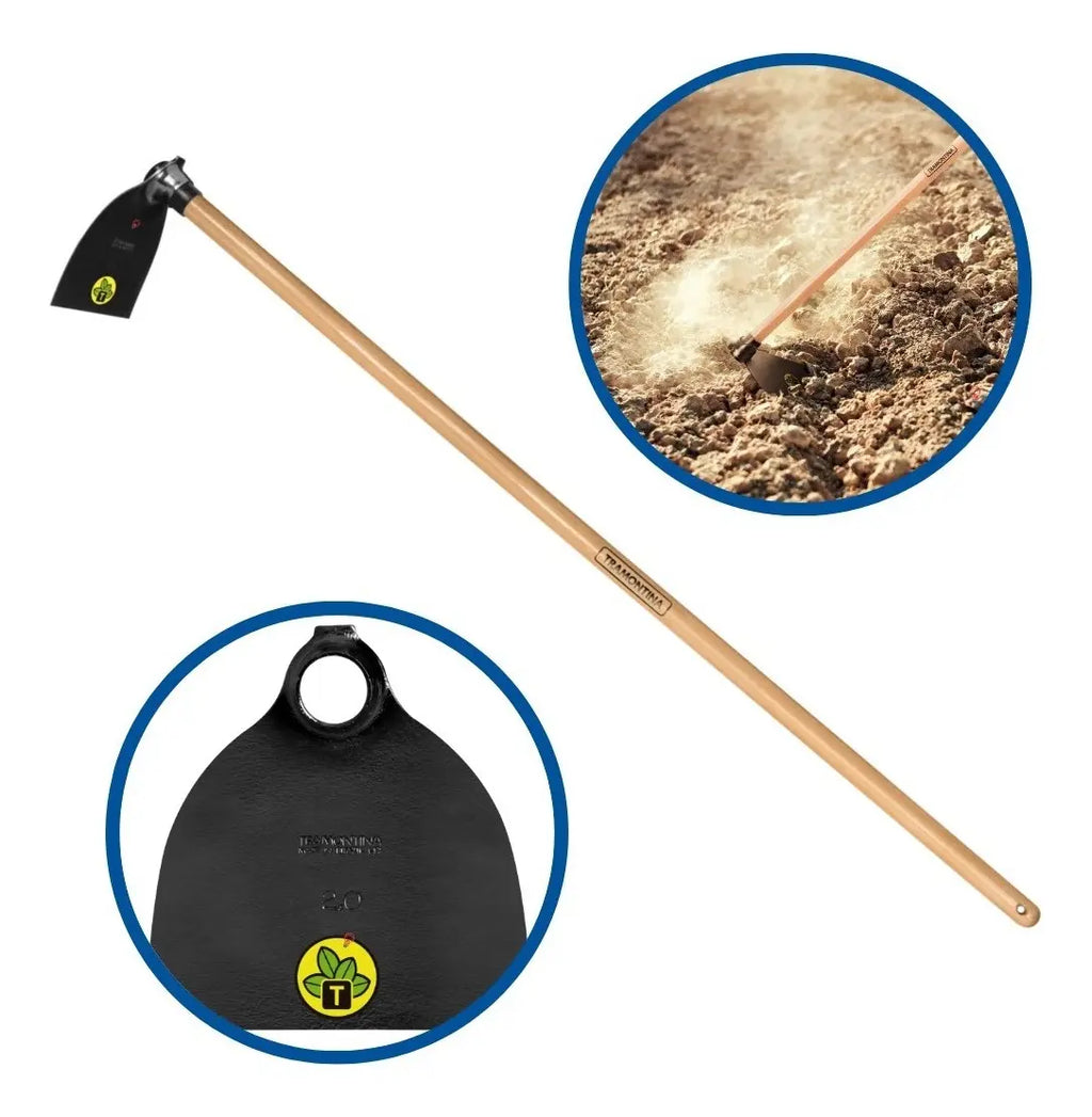 Enxada estreita para pequenas áreas de plantio, ideal para canteiros, hortas e manutenção de jardins compactos.